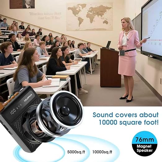 The performance in a real classroom is fantastic. This 3-mode portable personal speaker delivers clear sound. There is no annoying static or distortion. The VELOMAX Wireless Voice Amplifier for Teachers Review notes high volume levels. It easily fills a room of 50 students. Vocal tones remain natural and crisp. The 2600mAh long battery life lasts a whole week. You won’t need to charge it every day. The Bluetooth & USB playback connects almost instantly. This personal voice amplifier handles background noise well. It is a truly professional portable personal speaker.